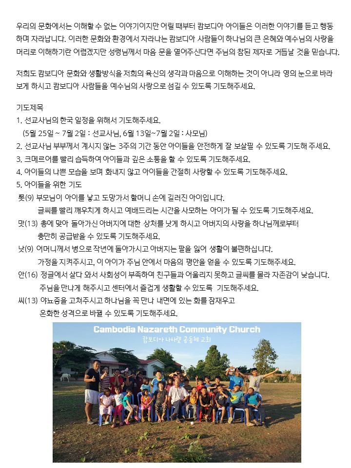 소용섭/오신애선교사_5월기도편지(캄국)