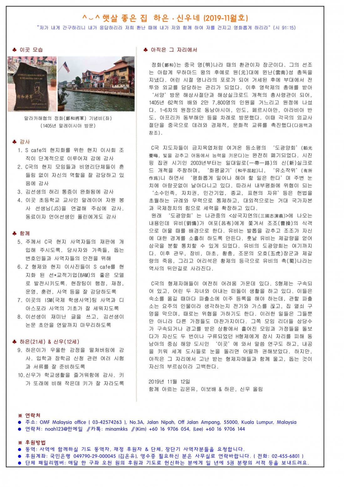 말레이시아 김온유, 이보배 & 하은, 신우 가정입니다.