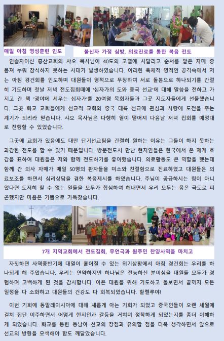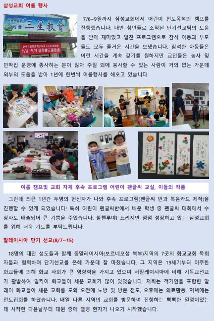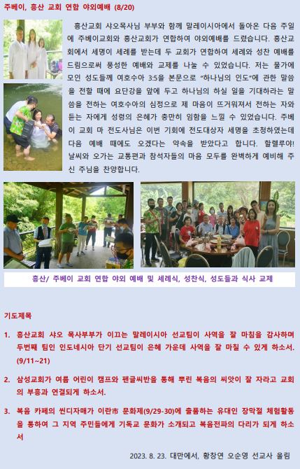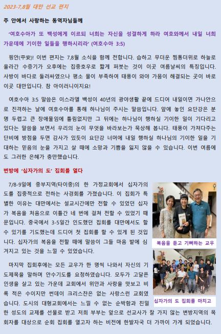 2023년 7-8월 대만선교편지(황창연, 오순영 선교사)