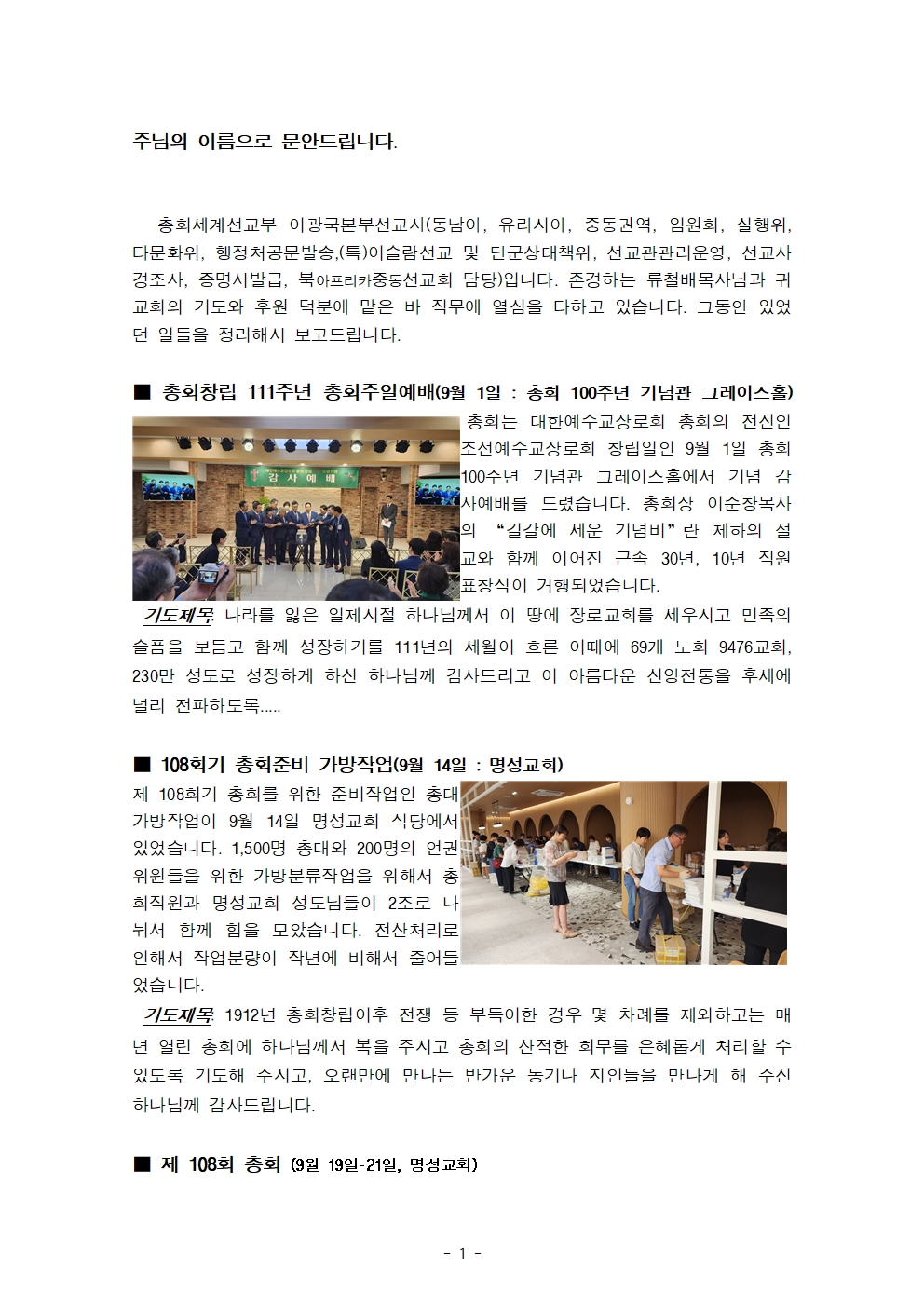 총회세계선교부 이광국본부선교사 선교보고