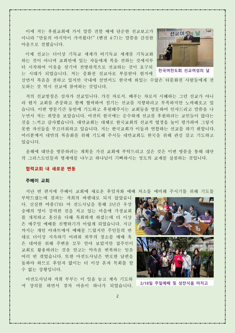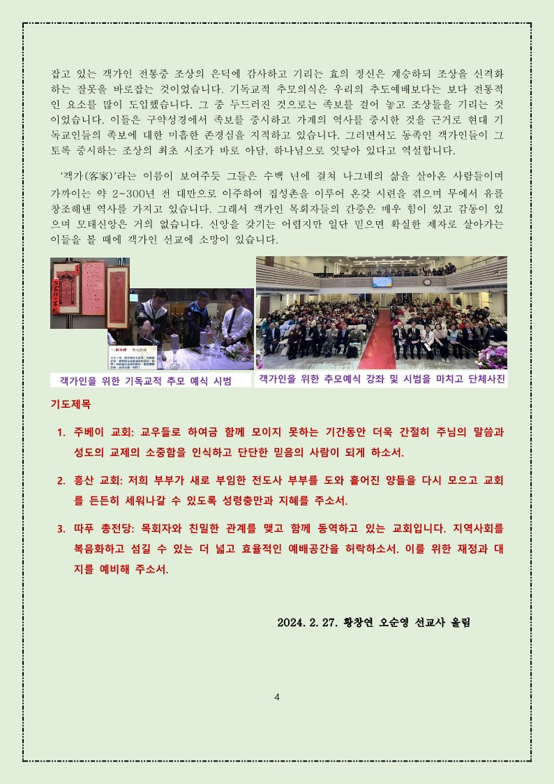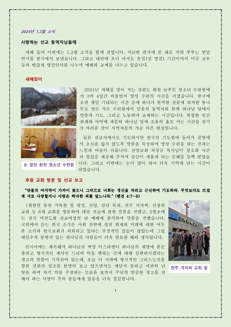 2024년 1, 2월 대만선교편지(황창연, 오순영 선교사)